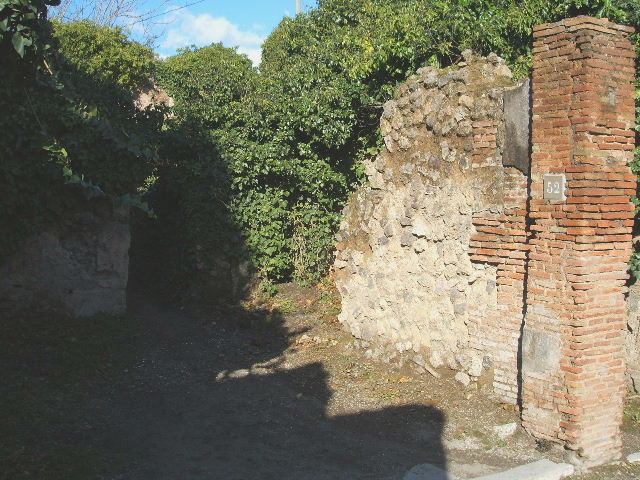 VII.2.52 Pompeii. December 2007. East wall and entrance of VII.2.53.